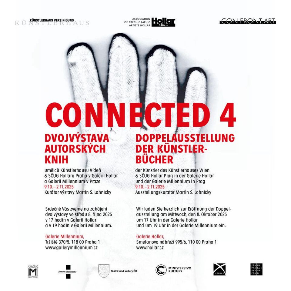 Výstava Connected 4 představuje autorské knihy z Rakouska a České republiky. Vznikla v rámci společného projektu Spolku Künstlerhaus Vídeň a Sdružením českých umělců grafiků Hollar. Výstava nabízí příležitost prozkoumat všechna média a formáty, ve kterých autorské knihy vznikají.