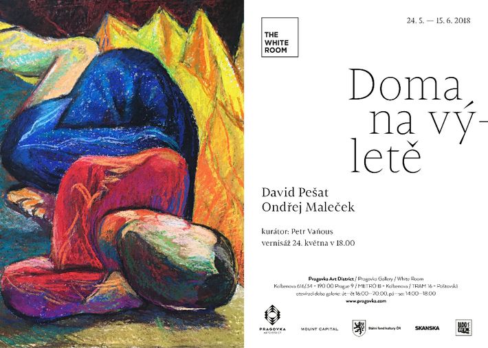 Název výstavy dvou malířů střední generace Davida Pešata (1980) a Ondřeje Malečka (1977) evokuje paradoxní situaci, totiž vědomí dočasnosti pobytu v místě, které je všeobecně vnímáno jako stabilní,budované útočiště a podvědomě spojováno s klidem a zázemím – domov (ale třeba také ateliér, coby místo pracovní koncentrace). Být „doma na výletě“ však znamená být si vědom jistoty v nejistotách a naopak nejistoty v jistotách. Je to vědomí otevřených cest, které zneklidňují. A to je také základní předpoklad jakékoliv živé tvorby. Totiž nenechat se ochočit svými vlastními schopnostmi a zkoušet stále něco nového a jinak. Nepodléhat stereotypům ani v rovině vnímání, ani v rovině reflexe a výrazu. Obraz a kresba, dvě média, v kterých se oba autoři vyjadřují, umožňují neustálou svobodnou migraci napříč emocemi, které mají být tvarováním polapeny vždy tak, aby zároveň uchovávaly pomíjivost okamžiku a zároveň ponechávaly otevřený horizont dalšího pohybu a směřování k přicházejícím impulzům, otázkám a výzvám. Pohyb, zvědavost a údiv jsou tím, co nutí umělce nesetrvat na jednom místě, ale měnit sebe sama ve flexibilní sensitivní médium, které zrcadlí to podstatné i za cenu vlastních pochyb či bolestné skepse.