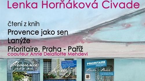Čtení Lenky Horňákové Civade z jejích knih Provence jako sen, Lanýže a Prioritaire, Praha – Paříž