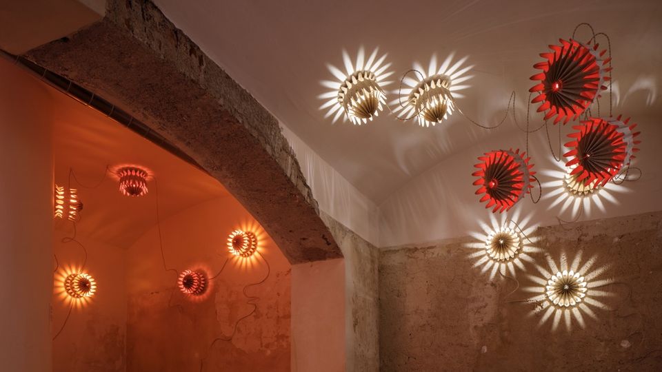 Výstava Floralis Temple představuje světelné instalace studia Jasna, které se specializuje na interiérové osvětlení z ručně vyráběného papíru. Tvorba zakladatelky Michaely Doležalové propojuje přírodní materiály, inovace a environmentální přesah, přičemž papír slouží nejen jako médium světla, ale také jako nositel příběhu a symbol tvůrčího myšlení.
