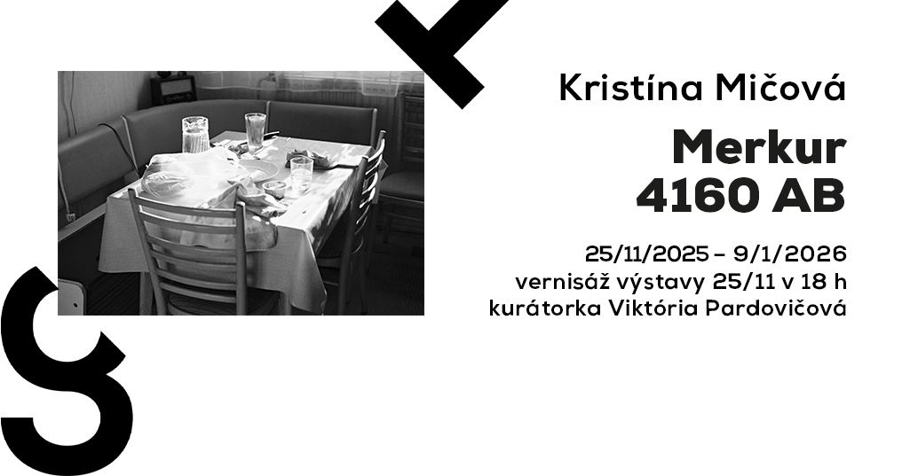 Výstava Merkur 4160 AB vizuální umělkyně Kristíny Mičové představuje její dlouhodobý fotografický projekt – stále se rozvíjející cyklus, na němž autorka pracuje přibližně od roku 2011. Soubor analogových fotografií je osobním záznamem i zkoumáním paměti a vnímavosti, prostřednictvím nichž Mičová citlivě pozoruje prostředí domu, zahrady a blízké rodiny v Bílých Karpatech.