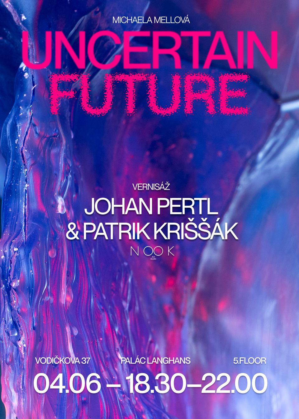 Výstava Uncertain Future má za cíl propojit dva odlišné, avšak vzájemně se doplňující přístupy k otázce budoucnosti. Patrik Kriššák prostřednictvím malby a Johan Pertl skrze skleněný objekt otevírají vizuální dialog o civilizaci, přírodě a čase.