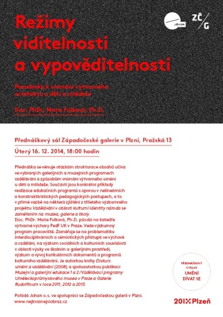 Přednáška se věnuje otázkám strukturace obsahů učiva ve vybraných galerijních a muzejních programech vzdělávání a modalitám percepce výtvarného umění u dětí a mládeže. Kriticky nahlíží úlohu dispozitivů percepce kulturních artefaktů a povahu diskursů, produkovaných kulturními a vzdělávacími institucemi v kontextu transmise kultury. Součástí jsou konkrétní příklady realizace edukačních programů s oporou v nelineárních a konstruktivistických pedagogických postupech, a to v přímé vazbě na některá výzkumná zjištění z tříletého projektu aplikovaného výzkumu NAKI DF 11P01OVV025 Vzdělávání v oblasti kulturní identity národa se zaměřením na muzea, galerie a školy.