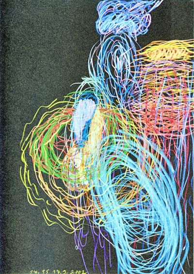Tvorba Tomáše Lampara (*1967), jejíž výběr představujeme po newyorské premiéře na jeho první samostatné pražské výstavě, se vyznačuje vytříbeným kresebným a malířským projevem a rafinovanou barevnou kombinatorikou, přesto necílí na estetické uspokojení diváka. Lampar vlastně ani žádný umělecký záměr nesleduje: cítí se být poddajným, zároveň však plně vědomým nástrojem síly, která si jej zvolila, aby jí vtisknul vizuální podobu. Není spiritistou zprostředkovávajícím komunikaci s „oním světem“, jeho tvůrčí proces se ale kresebným rituálům spiritistických médií v lecčems podobá.