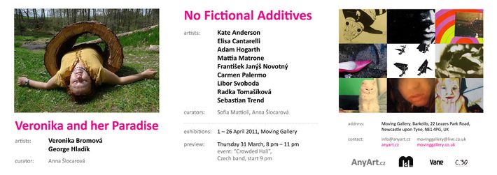 Výstava “No Fictional Additives” navazuje na předchozí výstavu, kdy je Veronika vyvedena ze svého vysněného a provokativního ráje zpět do reality. Výstava představuje mladé umělce z Velké Británie, Itálie a Čech, kteří se pohybují na hranici nevlídné reality každodenního života.