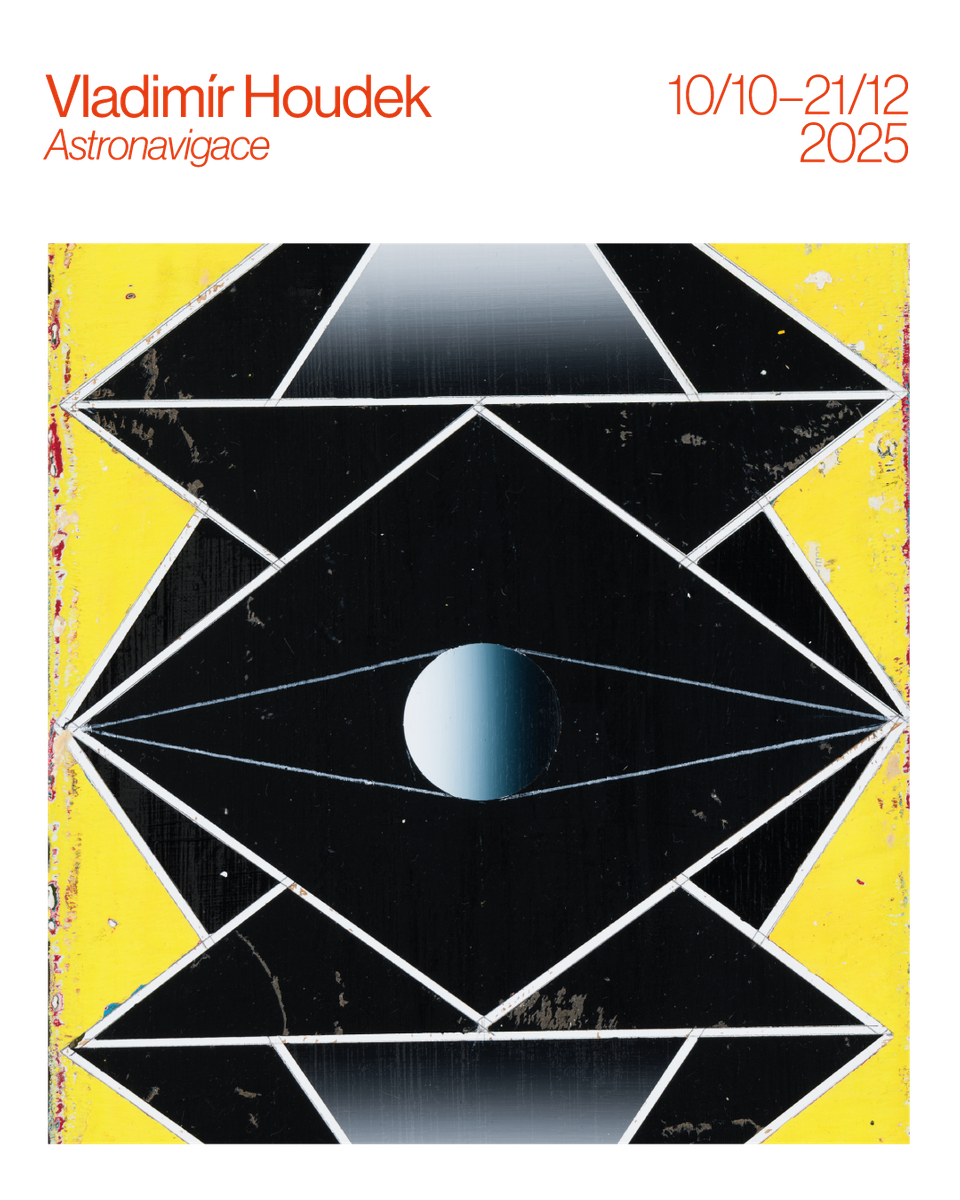 Výstava tzv. žluté série Vladimíra Houdka má slovy autora být jistým uzavřením tohoto cyklu, dokončením, odevzdáním. Zdá se, že to není možné. Autor se vzdaluje, obrazy pulzují a jejich svět symbolů zůstává vrytý do paměti jako oči kočky, kterou náhle zahlédnete u krajnice při jízdě v noci. Když zastavíte a podíváte se vzhůru, ta dvě světla tam stále jsou. A ony se pohybují. I Vladimír musí jet po chvíli dál, a pracovat na nových cyklech. Žlutá série je korpusem navigačních znaků a pomůcek, střelek kompasů, jazýčků sextantů, září majáků a supernov, navigací imaginace.