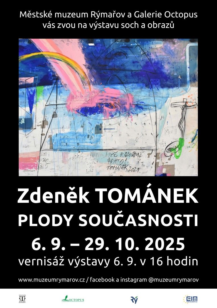 Výstava Plody současnosti představuje díla sochaře a malíře Zdeňka Tománka. Součástí výstavy jsou také sochy Semafor a Vánoční Gicometti, které jsou dočasně nainstalovány na náměstí Míru v Rýmařově.